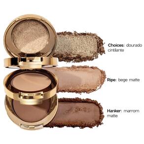Três cores versáteis em um único estojo Pigmentação intensa e fácil de esfumar Acabamento sofisticado e de longa duração Compacto e prático para o dia a dia