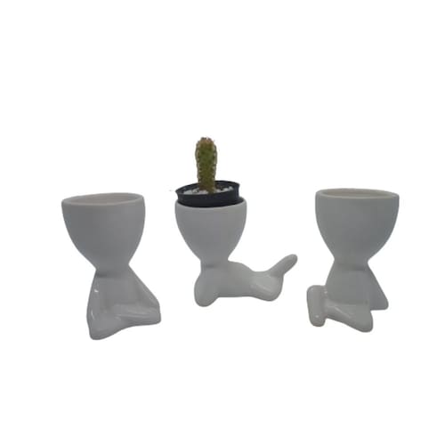 Trio De Vasos Bob Da Marca Odara Artesanatos Modelo Robert Plent Bob Vasos Para Suculentas Na Cor Branco Kit com 3 lindos vasinhos para enfeitar o ambiente e surpreender as visitas. Os vasinhos mais queridos do Brasil agora podem decorar sua casa!Deixe seu ambiente moderno com nossos vasos decorativo, ideal para decorar sua sala, seu escritório ou onde você desejar. Modelo deitado altura total = 10cm Diâmetro da cabeça vaso : 7cm de largura externa por 6,5cm de profundidade Diâmetro da cabeça vaso : 6cm de largura interna Profundidade do corpo: 12cm largura do corpo: 7cm Altura total do modelo: 10 cm Modelo meditando altura total = 11cm Diâmetro da cabeça vaso : 7 cm de largura externa por 6,5 cm de profundidade Diâmetro da cabeça vaso : 6 cm de largura interna Profundidade do corpo: 7 cm largura do corpo: 7 cm Altura total do modelo: 11cm Modelo sentado altura total = 11,5cm Diâmetro da cabeça vaso : 7 cm de largura externa por 6,5cm de profundidade Diâmetro da cabeça vaso : 6cm de largura interna Profundidade do corpo: 7 cm largura do corpo: 8 cm Altura total do modelo: 11,5 cm Os vasos não acompanham com a suculenta