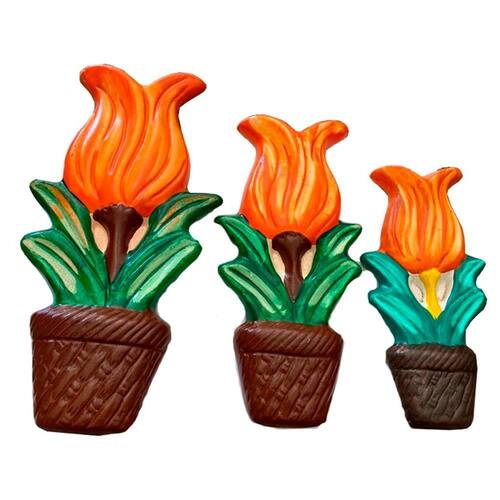 Trio de vasos flor tulipa em cerâmica enfeite de parede garden Trio de vaso com linda flor tulipa em cerâmica - enfeites de parede garden decor