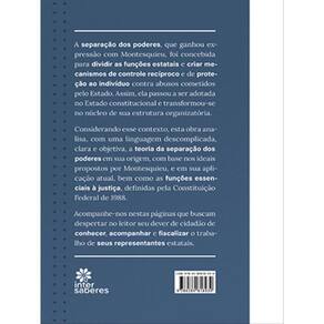 A separação dos poderes, que ganhou expressão com Montesquieu, foi concebida para dividir as funções estatais e criar mecanismos de controle recíproco e de proteção ao indivíduo contra abusos cometidos pelo Estado. Assim, ela passou a ser adotada no Estado constitucional e transformou-se no núcleo de sua estrutura organizatória.Considerando esse contexto, esta obra analisa, com uma linguagem descomplicada, clara e objetiva, a teoria da separação dos poderes em sua origem, com base nos ideais propostos por Montesquieu, e em sua aplicação atual, bem como as funções essenciais à justiça, definidas pela Constituição Federal de 1988.Acompanhe-nos nestas páginas que buscam despertar no leitor seu dever de cidadão de conhecer, acompanhar e fiscalizar o trabalho de seus representantes estatais.