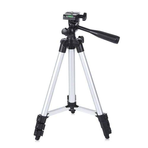 O tripé para máquinas fotográficas e smartphones foi desenvolvido com hastes em alumínio e pode chegar à altura de até 1,02 metros e suporta equipamentos de até 9 Kg. Ele é equipado com niveladore de bolha para o equipamento fotográfico. Ele ainda conta com cabeça niveladora com rotação de 360 e hastes com inclinação de 85, que permitem captar imagens próximas ao nível do solo.