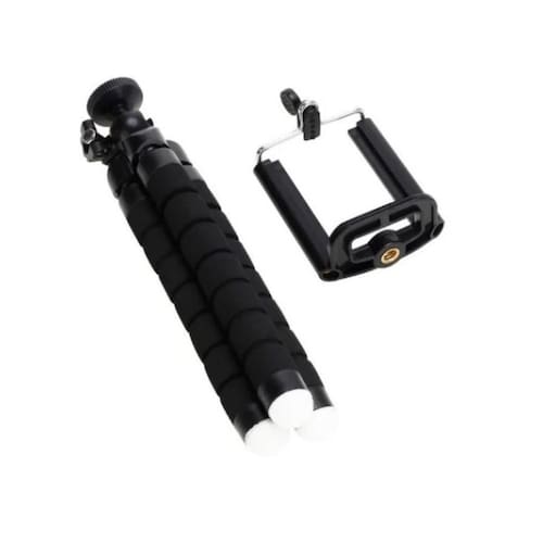Características: - alta flexibilidade; - feito em plástico rígido; - pés de ligação com almofadas; - parafusos de fixação universal, compatível com a maioria dos tamanhos de câmeras atuais; - permite ser para nível em superfícies irregulares; - compatível com smartphone suporte incluído ; - cada perna possuí oito bolas e soquete de articulações, chegando a até 360 graus de rotação; - possuí anéis emborrachados em cada soquete, proporciona mais aderência quando preso em superfícies lisas; Dimensões mini tripé: