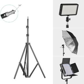 Tripé De Iluminação Profissional Kt-805 Light Stand De 2 Metros O Tripé de Iluminação de KT-805 Light Stand de 2 metros possui 03 seções em alumínio adonisado em preto, que podem ser ajustadas de acordo com a altura que o fotografo precisa do equipamento, também possui parafuso padrão de 1/4 e 1/2 ideal para iluminadores, softbox, flash de estúdio, sombrinhas para estúdio com adaptador para tripé. As seções do tripé são travadas com tensionados especiais fabricados em plásticos resistentes, suporta equipamentos com peso de até 2.5kg.Além da praticidade dada pelas seções, este Tripé de Iluminação Light Stand de 2 metros possui sistema levemente de amortecimento com molas em caso de soltura das travas, garantindo maior segurança e praticidade durante seu uso.Principais Características Altura máxima 2 metros 3 estágios de altura suporta equipamentos de até 2.5kg Conexões em nylon Parafuso padrão de 1/4 e 1/2 Tripé de Iluminação em alumínio na cor preta