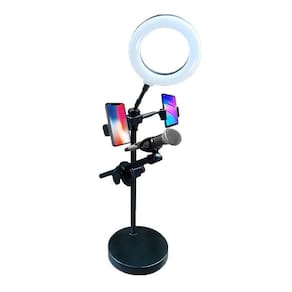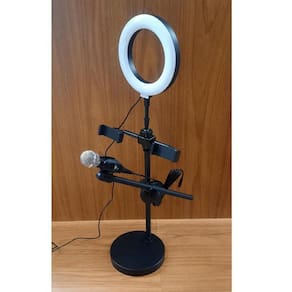 Kit De Mesa Para Gravação De Videos Com Anel De Luz Usb-Desenvolvido para gravações de vídeos, como lives e vídeos de cantores é um excelente tripé com resistência e locais indicados para sustento do celular e apoio de Microfone.-contém também uma Ring Light para uma iluminação melhor, produto completo.-perfeito pra quem quer deslanchar a carreira na internet como cantores e influenciadores digitais comentaristas.-fácil de usar, durável e de pouco peso, facilitando o transporte.-características/especificações:diâmetro: 16 cm Alimentação: 5v USBComprimento aproximado: 50cmÂngulo Regulável: SimPotência: 10wPeso: 1,5kg-Itens Inclusos:2 Bastões2 Apoios para celular 1 Apoio de microfone 1 Ring Light1 Base- Imagem apenas ilustrativa"Itens decorativos não acompanham o produto"