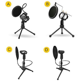 Tripé Microfone ajustável Desktop Portable Stand Cor: Preto Material principal: ABS Adequado para o diâmetro do microfone: menos de 44mm Diâmetro do filtro Pop: aprox. 100mm / 3.94in Comprimento do braço: aprox. 200mm / 7.87in Tamanho do pacote: 14 * 10.5 * 7.7cm / 5.51 * 4.13 * 3.03in Peso do pacote: 165g / 5.82oz Características: - Suporte de tripé de microfone de mesa profissional para transmissão, podcasting, reuniões on-line, canto, gravação de estúdio, etc. - Adequado para todos os microfones cujo diâmetro é inferior a 44mm, com uma grade para segurar o microfone com firmeza. - A montagem sólida do tripé pode ajudar a manter seu dispositivo seguro e estável. filtro de camada dupla, que pode filtrar o ruído externo de forma eficaz, alcançando a reprodução de som e impedindo o som anti-vibrato e estalo. - 360 ° tubo de pescoço de ganso flexível pode ser facilmente ajustado para o ângulo adequado como você precisa .- Design destacável, conveniente para armazenamento e transporte, fácil de instalar ou desmontar. Instalações: (1) Suporte de microfone de montagem de choque + Suporte de tripé de mesa: Adequado para fusão de estúdio de rádio, karaokê, gravação em casa e som de narração, etc. Equo com um tripé super estável para que seu microfone possa ser segurado com segurança e firmeza. (2) Pop Filter + Pop Filter Rod: Item essencial para gravar, falar ou cantar. Você ajudará a tornar sua mensagem alta e clara e banirá os temidos assobios e arrastamentos que ocorrem ao pronunciar a letra "S" e a explosão de ar que segue o "b" e o "p" com esta tela pop-up do microfone. Nota 1. O suporte do microfone é adequado para microfones com um diâmetro inferior a 44mm. Por favor, verifique o tamanho do seu microfone antes de encomendar!2. O microfone na imagem não está incluído.
