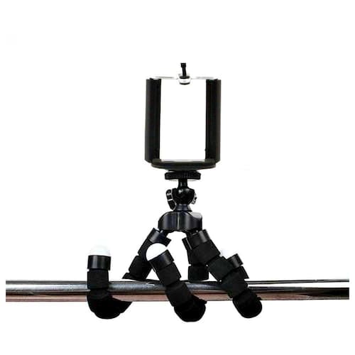Mini tripé flexível universal octopus celulares smartphone tabletsmini tripé flexível octopus universal com adaptador para celulares smartphonesportátil e com peso leve, o mini tripé flexível octopus para smartphones é o acessório perfeito para tirar fotos e fazer vídeos com praticidade. Pequeno, você pode ajustá-lo para usar em qualquer lugar.Característicasfeito de plástico, borracha e alumínio de alta qualidade o produto tem design sólida e estável, não oscila de posição.Além de todos as travas de ajuste da "cabeça" do tripé nosso produto conta com um suporte universal extra para uso de smartfones e câmeras, com pan de 360º e tilt de 90º.A base para encaixe para câmera tem parafuso de 1/4 padrão e é feita em plástico com revestimento emborrachado para uma melhor aderência ao seu equipamento. 1. Flexibilidade completa, feita de plástico rígido 2. Preto emborrachado anéis 3. O adaptador é aplicável com a maioria dos tamanhos de câmera digital e é removível 4. Conexões anexas removíveis com botão de trava 5. Permiti que ele seja nivelado em superfícies mais irregulares 6. Peso: 80 g7. Tamanho: 24cm altura x 5cm largura 8. O item pode suportar max 275 g 9. Cor: pretoespecificaçõesmaterialalumínio - plástico abs - borrachapeso80 gcorpretacompatibilidadetelefones, smartphones ou câmeras que tenham entre 5 cm e 10 cm de largura.Itens inclusos no pacote1 x mini tripé flexível para smartfones1 x adaptador universal