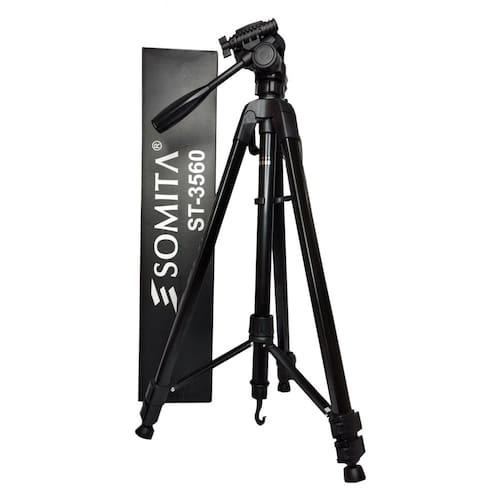Tripé Somita St 3560 - 1,70 Mt O Somita ST 3560 é um tripé para câmeras de vídeo e fotografia em alumínio forte e resistente com capacidade de carga de até 3Kg. Possui cabeça com ajuste para os 3 eixos facilitando a filmagem/fotografia em diversos angulos . O sistema de abertura e fechamento das seções de suas pernas são do tipo quick release, sendo muito prático e rápido para abrir e fechar o tripé. Possui regulagem por manivela para elevação e abaixamento do tripe e pés em borracha para evitar deslizamentos. Tamanho fechado: 56 mm Tamanho máximo aberto: 1,70 mm Tamanho mínimo aberto: 66 mm Peso liquido: 1600g Suporta ate : 3kgs Especificações: Ideal Para:Uso para fotografia e filmagem Recomendação de Uso:Fotografia e filmagem Itens Inclusos:1 Tripé com cabeça ball head 1 Bolsa para transporte Composição :Alumínio Tamanho fechado:66 cm Altura máxima:170 cm Altura minima:64 cm Seções:3 Diâmetro:21 mm Capacidade máxima:3 Kg Ean: 6952344203002