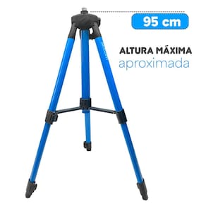 Rosca: 5/8" Altura máxima aproximada: 95 cm Altura de armazenamento: 22 cm Peso máximo suportado: 5 kg Peso aproximado: 720 g Estrutura: Retrátil com três seções Compatibilidade: Níveis a laser
