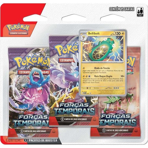 Triple Pack Pokémon Bellibolt PS130 Escarlate e Violeta 5 Forças Temporais - 19 Cartas Copag