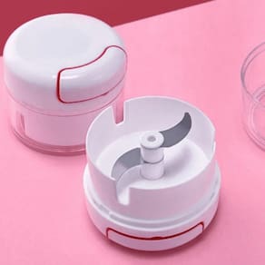 O triturador e processador de alimentos manual funciona de maneira bem simples: basta inserir o alimento no recipiente de acrílico, fechá-lo, puxar a corda retrátil cerca de 5 vezes e pronto, o alimento estará processado. A espessura do alimento pode ser controlada facilmente através do número de vezes em que a corda é puxada. Quanto mais vezes, mais processado será o alimento.