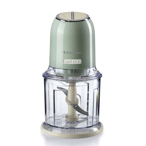 Triturador de alimentos Ariete Vintage com 2 velocidades, potência de 400W e 4 lâminas de aço inoxidável. Ideal para picar legumes, carne, queijo, pão, fruta seca e gelo.Acessórios