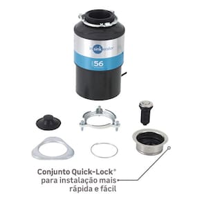 Resumo das caracteristicas e especificacoes: Triturador de Alimentos Insinkerator modelo 56; Tensao Eletrica: 220V; Potencia: 0.55 HP; Altura: 38,00 cm; Largura: 23,00 cm; Peso: 7,50 Kg; Material: Aco Inox; Capacidade de Trituracao: 0,98 L; Possui Protetor; Garantia do Fabricante: 36 meses; Produto Regulamentado; Recomendado para cubas de 4,5"" (polegadas)."