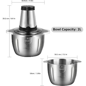 Especificações: - Voltagem 220v - Feito em Inox - 4 Laminas - Multiprocessador - Moedor - Triturador - Potência de 850w - Capacidade do processador 2L - 2 velocidades - Dimensões 24x17x13 Cm