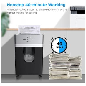A Trituradora de Papel Micro Cut da BONSEN pode triturar até 12 folhas por vez em pequenos pedaços de 3x5 mm, além de CDs, cartões de crédito, grampos e correspondências. Ideal para uso em casa ou escritório, possui tempo de funcionamento de 40 minutos e operação ultra silenciosa de 55 dB, graças ao seu sistema patenteado de resfriamento. A função antiatolamento e reversão automática evitam obstruções, garantindo uso contínuo. Com design amigável ao usuário, possui botões convenientes e indicadores LED para facilitar o uso e manutenção. Seu cesto removível de 20 litros permite maior capacidade de armazenamento, enquanto sua construção resistente garante durabilidade. A Trituradora de Papel Micro Cut da BONSEN é a escolha perfeita para quem busca eficiência, segurança e tranquilidade em suas tarefas diárias.