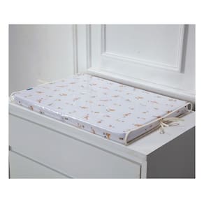 Perfeito para apoiar na cômoda fraldário e completar o espaço da troca de fraldas, esse produto é composto por duas peças: um trocador de espuma com capa de tecido e uma capa plástica protetora translúcida com acabamento em viés.