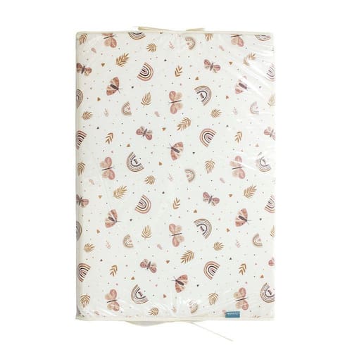 Perfeito para apoiar na cômoda fraldário e completar o espaço da troca de fraldas, esse produto é composto por duas peças: um trocador de espuma com capa de tecido e uma capa plástica protetora translúcida com acabamento em viés.