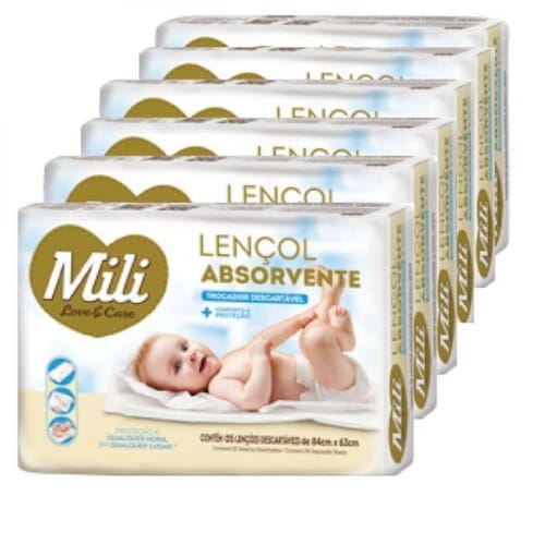 Trocador para bebê descartável tipo lençol absorvente descartável Mili linha Love e Care.