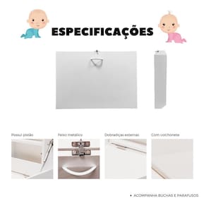 O trocador de fraldas fixo parede é a solução ideal para quem procura praticidade, maior movimento e uma solução inteligente e confortável na troca do bebê, seja no seu ambiente familiar ou comercial. Abertura e fechamento suave, graças aos pistões a gás impedindo que se abra de força brusca, dobradiças na parte interna do trocador e compartimento para shampoos, perfumes e lenços umedecidos.