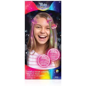 Decore seu cabelo como um Techno Troll! Fixe em um Troll Hair Light e modele os fios de cabelo de fibra óptica em seu próprio cabelo para um incrível show de luzes. Pressione para escolher a cor dos fios de fibra óptica e o modo de luz de pulso. Desliga automaticamente após 30 minutos de uso para preservar a vida útil da bateria. Baterias incluídas. Mede aprox. 30cm de comprimento (pode ser aparado para o comprimento de cabelo desejado).