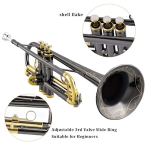 - Bb, B plana, trompete: trompete EASTROCK gravado à mão, corpo sólido e durável, excelente processo de pulverização, seu som é excelente e brilhante, penetrante, abundante e poderoso, excelente vibração
