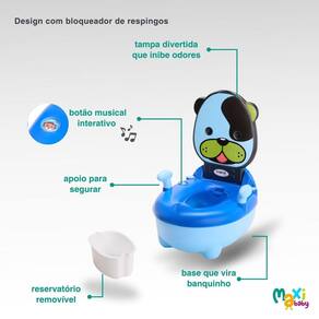 Troninho Penico Infantil Musical Desfralde Que Vira Banquinho Cachorro Azul Maxi Baby