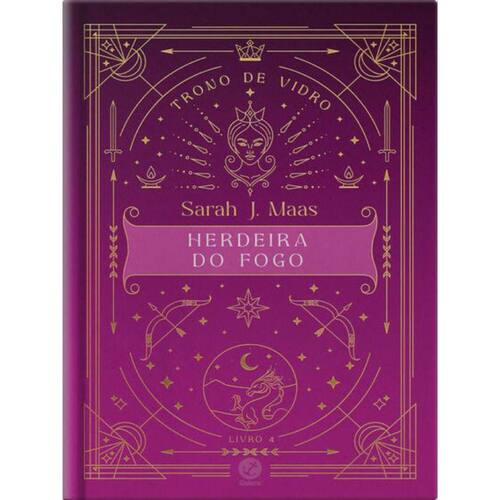 A assassina do tirano rei de Adarlan está de volta ainda mais forte e letal em Herdeira do Fogo, volume 4 da série best-seller Trono de Vidro. Com mais de 1 milhão de exemplares vendidos no Brasil, a série de estreia de Sarah J. Maas ganha edição especial em capa dura com um projeto gráfico exclusivo perfeito para os fãs de fantasias épicas.   Celaena Sardothien sobreviveu a provações mortais e a perdas devastadoras, mas o custo foi terrível. Agora ela está determinada a obter sua vingança contra o rei de Adarlan, apesar de ainda ser obrigada a servi-lo como assassina. E todas as suas esperanças de derrotá-lo estão nas respostas que deve buscar em Wendlyn. Colocando em risco o próprio futuro, Chaol Westfall, capitão da Guarda Real do rei, envia a jovem até o lugar pensando em protegê-la, sem desconfiar de que a assassina tinha outros planos — e, se conseguir superar as próprias fraquezas, Celaena se tornará a maior ameaça de Adarlan. Enquanto ela descobre mais sobre o próprio destino e se prepara para confrontar a verdade sombria de sua origem, um exértico bestial está sendo reunido com o objetivo de escravizar o continente. Agora, além de enfrentar os próprios demônios, Celaena precisará travar uma guerra que põe em xeque sua aliança com o povo de Terrassen e com aqueles que passou a amar e, a tarefa mais difícil de todas, impedir um poder maligno e milenar de dominar Erilea.