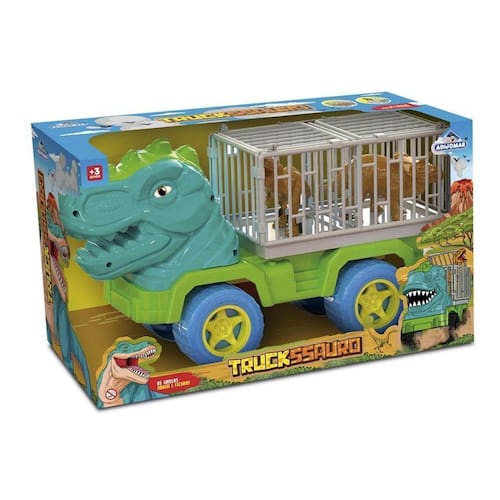 Começou a captura dos dinos Um carro totalmente equipado para explorar todo o domínio dos dinossauros, com uma cabine de cabeça de dinossauro Rex, que pode afrontar qualquer inimigo.Com jaulas embutidas no brinquedo, os pequenos poderão caçar e colocar os mini dinos presos nelas.Neste kit fantástico acompanha: 1 caminhão de 42 cm de comprimento com 2 compartimentos individuais de jaula com abertura superior e mais dois dinossauros pra se divertir. Invada o domínio dos dinossauros, tente prendê-los e divirta-se.Homologação Inmetro: CE-BRI/IQB 006107 54705/21-001