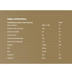 O true ômega 3 contém uma relação muito favorável de epa e dha, além de ser adicionado 10mg de vitamina e 100% das necessidades diárias , antioxidante que protege contra danos causados pelos radicais livres.