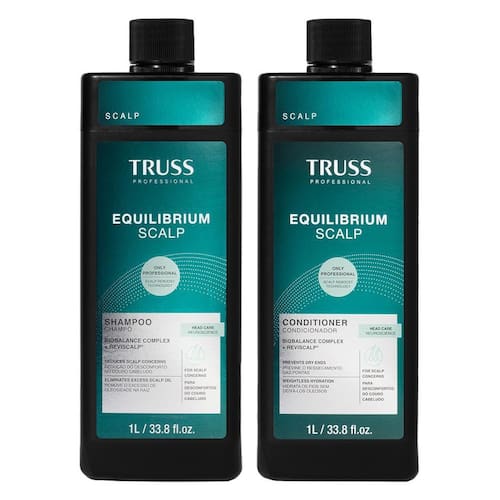 Combo Truss Equilibrium Scalp: Shampoo 1L + Condicionador 1L Este combo traz o Shampoo e o Condicionador Equilibrium Scalp em embalagens de 1 litro, ideais para quem busca praticidade e maior duração. Com fragrância fresca e ação e revitalizante, este combo garante limpeza profunda, hidratação intensa e controle da oleosidade para cabelos mais saudáveis. SHAMPOO EQUILIBRIUM SCALP Shampoo anticaspa com pH adaptado ao couro cabeludo, limpa profundamente, remove impurezas e controla a oleosidade. Possui fragrância fresca de Neroli, Bergamota e Flor de Laranjeira. Limpeza profunda; Controle da oleosidade; Fragrância refrescante. - Como usar Aplique o shampoo sobre os cabelos molhados, massageie suavemente e enxágue. Repita a operação se necessário. CONDICIONADOR EQUILIBRIUM SCALP Condicionador que hidrata e nutre os fios, previne o ressecamento das pontas e proporciona maciez e desembaraço. Fragrância fresca de Neroli, Bergamota e Flor de Laranjeira. Hidratação intensa; Maciez e desembaraço; Fragrância refrescante. - Como usar Após o uso do shampoo, retire o excesso de água dos fios e distribua o condicionador no comprimento e pontas. Massageie, desembarace, deixe agir por 2 minutos e enxágue. Marca: Não Informado Ean: 7891376174074