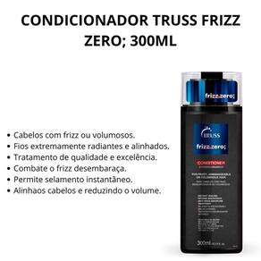 Truss Frizz Zero - Condicionador 300ml Truss Frizz Zero - Condicionador para cabelos com frizz ou secos. TrussFrizz Zero desembaraça instantaneamente, promove brilho intenso e reduz o frizz. - O Condicionador Truss Frizz Zero age rapidamente nos fios, disciplinando e alinhando a superfície capilar. Sua fórmula é contra indicada para cabelos oleosos, pois possui muitos ativos com alta carga de óleos. Renova os cabelos danificados, proporcionando brilho. - Livre de corante, chumbo, parabeno, petrolato e lactose. Conselho de Aplicação - Aplique o condicionador e massageie, deixe agir por 2 minutos e enxágue. Nossos Experts Ensinam - Uma dica para evitar o frizz é apostar em pentes de madeira. Como eles não produzem energia estática, como os de plástico, é ideal para manter os fios disciplinados. - Blend de Óleos Vegetais, Rico em ômega 6, 9 e Vitamina A, C e E. - Cabelos selados, alinhados e completamente livres de frizz.
