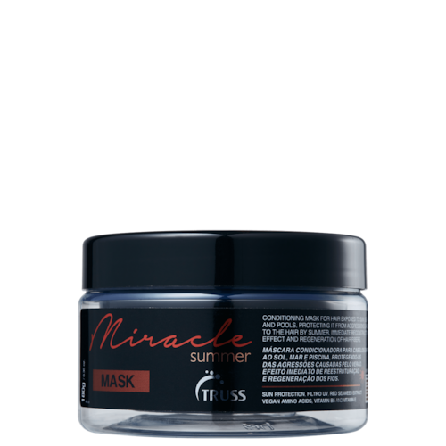 A Máscara Capilar Truss Miracle Summer foi formulada especificamente para quem ama o verão e quer ter cabelos saudáveis durante o ano todo. Com ingredientes como Vitamina E, Aminoácidos e Extrato de Algas, dá resultado imediato de reestruturação e regeneração da fibra capilar, com tratamento preventivo e curativo. Conheça a linha completa para viver o verão intensamente!