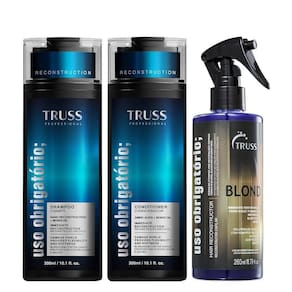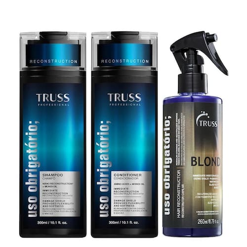 Contem: 1 unidade shampoo uso brigatorio 300ml 1 unidade condicionador uso obrigatorio 300ml 1 unidade truss uso obrigatorio blond tratamento reconstrutor 260ml Marca: Não Informado