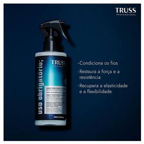 Truss uso obrigatório kit reconstrutor 2x260ml A nova versão O Spray Uso Obrigatório;, um dos queridinhos da TRUSS, está ainda mais irresistível, traz uma fragrância ainda mais sofisticada e duradoura! Mantendo o DNA da linha Uso Obrigatório; e suas notas frutais, a fórmula evoluiu, incorporando tecnologia de ponta que é liberada perfume ao longo do dia através do contato com o oxigênio. Spray Uso Obrigatório; age como um tratamento instantâneo, desembaraçando, proporcionando força, condicionamento e maciez aos fios. - Como usar Borrife o spray de 2 a 3 vezes, no comprimento e pontas mecha a mecha, após o shampoo e antes do condicionador ou máscara. Massageie e enxágue para ter o efeito condicionante. Também pode ser como leave-in finalizador borrifando de 2 a 3 vezes no comprimento e pontas. Resultado Cabelos desembaraçados, macios e brilhantes Dicas: para um tratamento completo, utilize a Máscara ou Condicionador Uso Obrigatório. Pode ser também como finalizador nos cabelos secos para um boost de brilho e controle do frizz. Marca: Não Informado Ean: 7893045113001