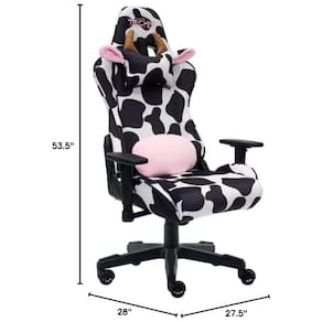 Diga às outras cadeiras de jogos para MOO ve fora do caminho, porque nossa nova cadeira de jogos TS85 Cow Print LUXX Series é exatamente o que você precisa para se destacar. Ele tem um estofamento suave e aveludado, assento de espuma de memória de alta qualidade, um apoio de cabeça de vaca com orelhas de pelúcia rosa e chifres marrons e um travesseiro lombar de dupla face Proporcionando o máximo conforto, estilo e desempenho, esta cadeira de jogos também possui apoios de braços ajustáveis em 2D, ajuste pneumático de altura do assento, mecanismo reclinável de até 150 graus e muito mais Esta cadeira pode suportar pesos de até 113 KG Marca: Não Informado