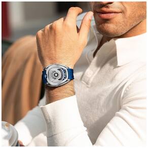 A exclusividade é fundamental na criação deste modelo. Personalize cada detalhe, desde a caixa destacável em aço inoxidável até a pulseira em fluororubber e a coroa meticulosamente trabalhada. Disponível em diversas cores para combinar com seu humor ou estilo, permitindo que você crie um visual único que se destaca em eventos artísticos ou ocasiões luxuosas à noite.