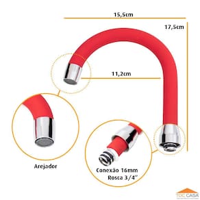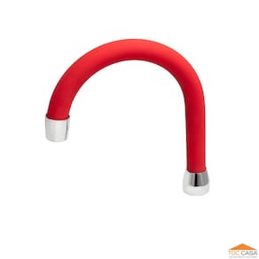 Tubo Bica Móvel Tipo U para Lavatório em Silicone Vermelho e Arejador Fixo
