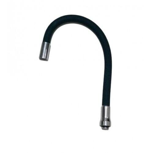 Funcionalidades e Recursos De Destaque: Tubo flexível em silicone e metal, na cor Preta, com detalhes em cromado, para torneira de cozinha.