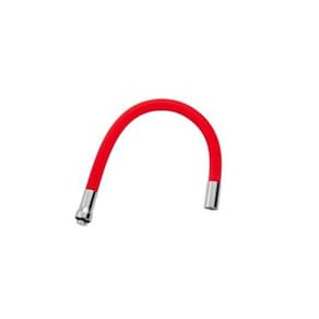Funcionalidades e Recursos De Destaque: Tubo flexível em silicone e metal, na cor Vermelho, com detalhes em cromado, para torneira de cozinha.