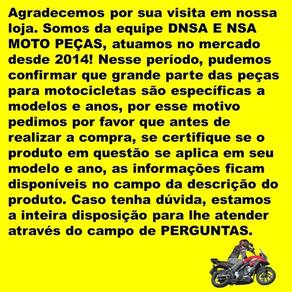 Agradecemos Por Sua Visita Em Nossa Loja. Somos Da Equipe Dnsa E Nsa Moto Peças, Atuamos No Mercado Desde 2014! Nesse Período, Pudemos Confirmar Que Grande Parte Das Peças Para Motocicletas São Específicas A Modelos E Anos, Por Esse Motivo Pedimos Por Favor Que Antes De Realizar A Compra, Se Certifique Se O Produto Em Questão Se Aplica Em Seu Modelo E Ano, As Informações Ficam Disponíveis No Campo Da Descrição Do Produto. Caso Tenha Dúvida, Estamos A Inteira Disposição Para Lhe Atender Através Do Campo De Perguntas.