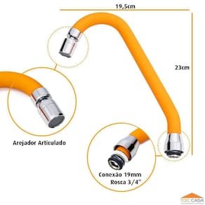 Com design sofisticado e material altamente resistente e durável, nossa linha de Bica Móvel tubo J, possui movimento de 360, produzida em inox revestida de silicone laranja e arejador articulavel em latão, além de colaborar com a economia de água, confere praticidade e é extremamente funcional para a realização das tarefas diárias, é a peça ideal para sua torneira de cozinha.