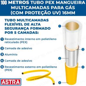 Tubo Multicamada Pex Gas Aluminio 16Mm X 100Mt Astra Prot Uv