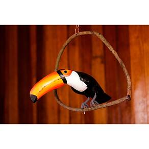 Tucano de madeira, ave ícone do brasil, ideal para decoração de ambientes como: varandas, jardins e áreas externas. Produto de origem artesanal, esculpido e pintado à mão. Tamanho: 44 x 13 x 13 cm Como montar: encaixe os dois pés no corpo do tucano. após esse procedimento, encaixe os pés já fixados, no cipó arco , que contém dois furos para encaixe. Cipó arco de madeira já incluso. Marca: Não Informado