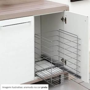 Garantia: 90 dias / Peso: 2,314kg / Cor predominante: preto / Referência: 7898187745141 Dimensões: 39,5cm (C) x 38cm (L) x 44cm (A); Dimensões internas: 37cm (C) x 36cm (L) x 35cm (A); Dimensões para o módulo de instalação: 41cm (C) x 39cm (P) x 50cm (Altura mínima); Espessura do arame da estrutura: 4mm; Espessura do arame do fundo: 3mm; Capacidade: 35kg; Comprimento da corrediça fechada: 35cm; Comprimento da corrediça aberta: 73cm; Distância entre os parafusos para fixação: 34cm; Material: aço carbono com pintura epóxi preto.