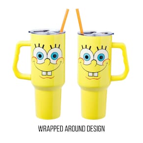 Silver Buffalo Copo de aço inoxidável SpongeBob SquarePants com alça, cabe no suporte de copo padrão, 1,134 g