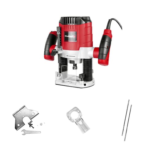 Os extensos acessórios do TC-RO 1155 E também incluem uma cerca de corte, uma ponta da bússola, uma luva de cópia e a ferramenta certa para a troca da fresa. Acompanha pinças para fresas de 6,35 mm (1/4?) e 8 mm.