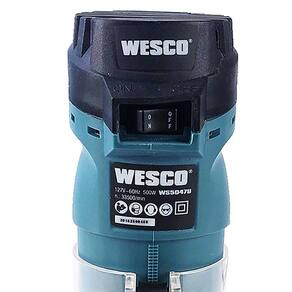 Tupia laminadora wesco 500w ws5047, indicado para cortes e acabamentos em fórmicas e entalhes em madeira. Velocidade: 35.500 rotações por minuto.