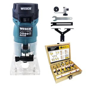 Tupia laminadora wesco 500w ws5047, indicado para cortes e acabamentos em fórmicas e entalhes em madeira. Velocidade: 35.500 rotações por minuto.
