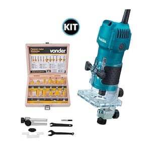 Tupia Makita 3709 350w 220V + Jogo de Fresas para Madeira 6mm com 12 Pecas Vonder