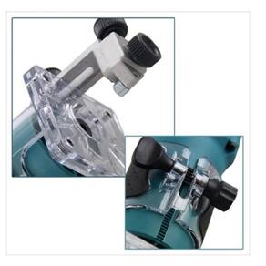 Ajuste de profundidade suave e preciso com mecanismo de Pinhão e cremalheira. Punho emborrachado proporciona maior controle e conforto. Base plástica transparente para fácil visualização da linha de corte.