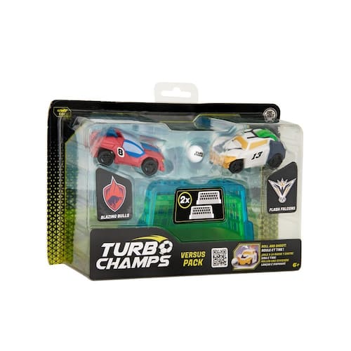 Com o Turbo Champs Desafio 1x1, dois carrinhos duelam em alta velocidade para marcar gols incríveis. O conjunto vem completo com 2 carros, 2 gols e 1 bola, prontos para os desafios mais radicais entre amigos ou em família.